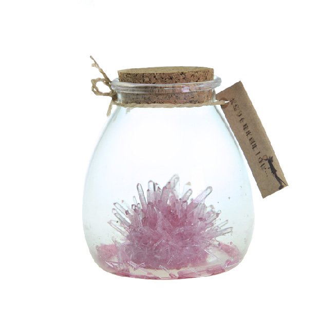 Content: Bag of crystal growing powder, Crystal seed, Bottle, Cork, Card, Hemp string, Muddler, Manual